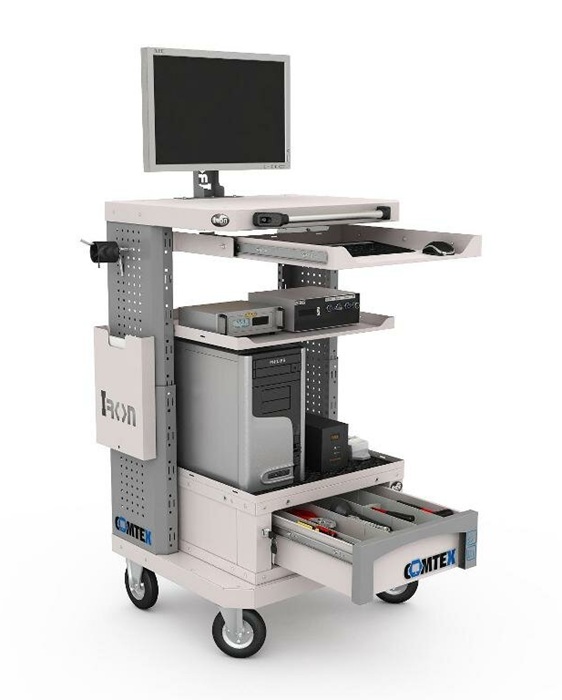 Дополнительно на тележку можно установить: выдвижную полку Comtex, выдвижной ящик Comtex, кронштейн для монитора, кронштейны для RACK модуля, цоколь для тумбы Comtex, лоток для тумбы/тележки Comtex, карман для документов А4 и другие аксессуары.