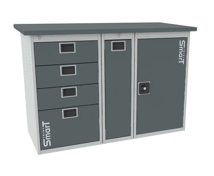 Металлические верстаки серии SMART предназначен для обустройства легких производств, мастерских и гаражей. Все элементы изготовлены из высококачественной листовой стали, а покрытие устойчиво к механическим воздействиям и агрессивным жидкостям. Представляют собой сборно-разборную конструкцию.