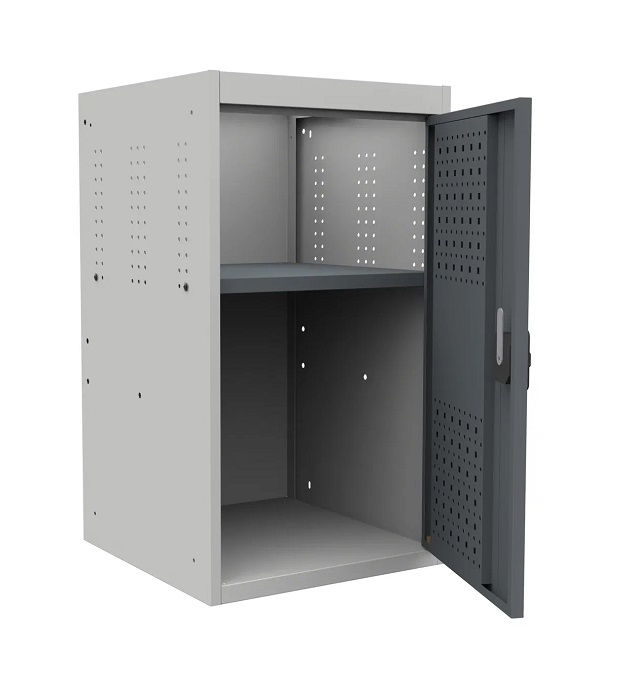 Выдерживает равномерно-распределенную нагрузку на верстак - 1000 кг, на тумбу - 300 кг, на полку - 60 кг, на выдвижной ящик -30 кг, на перфорированный экран - 50 кг.