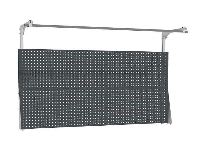 Столешница выполнена из фанеры (24 мм) с покрытием из оцинкованного листа металла. Опора сварная. Размер опоры (ВхШхГ) - 800х40х660 мм. Промежуточная панель устанавливается между двумя опорами и предназначена для придания жесткости верстаку. Одновременно является задней стенкой или нижней полкой. Панель облицовочная перфорированная устанавливается на опору верстака. Перфорированный экран предназначен для размещения навесных аксессуаров. В комплекте экрана: два экрана, комплект упоров, две стойки, перекладина-направляющая 200. Размер квадратной перфорации 10х10 мм, шаг установки аксессуаров 35 мм.