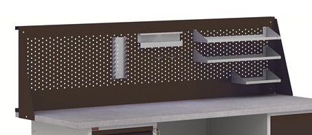 Перфорированный экран Э-1,6 черный предназначен для установки на верстаки длиной 1600 мм (ВП-2/1,6, ВП-3/1,6, ВП-4/1,6, ВП-5/1,6, ВП-6/1,6). Изготовлен из металла толщиной 1,2 мм. Экран имеет круглую перфорации диаметром 7 мм. В комплектацию экрана входят два кронштейна для крепления экрана к столешнице верстака. Дополнительно на экран можно установить второй экран Э-1,6В, удлиненную полку, укороченную полку, держатель инструментов, держатель ключей, крючки длиной 80 и 50 мм. Цвет: черный муар Ral 7021. Тип покрытия: порошковое.